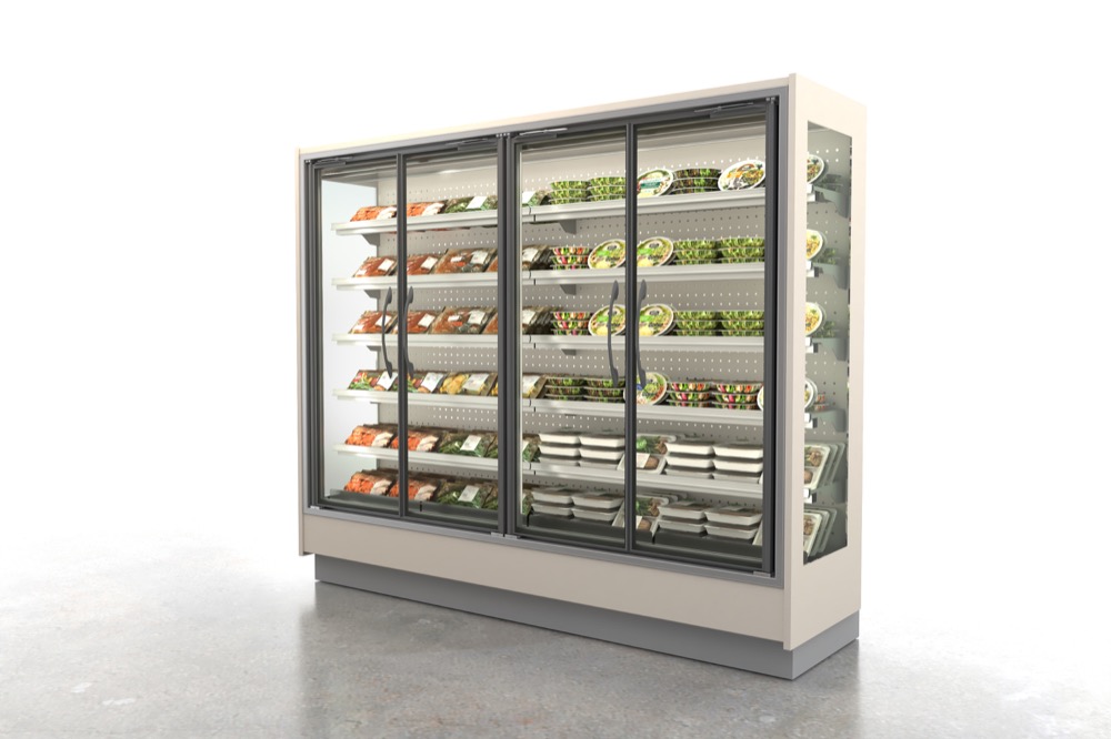Hillphoenix QC-R Multi-Deck, Self-Service, Refrigerated Display. Designed for prepackaged bakery, beverage, dairy, deli and produce applications with option for standard 30" depth or narrow 24" depth. Available in several lengths and up to four rows of shelves.